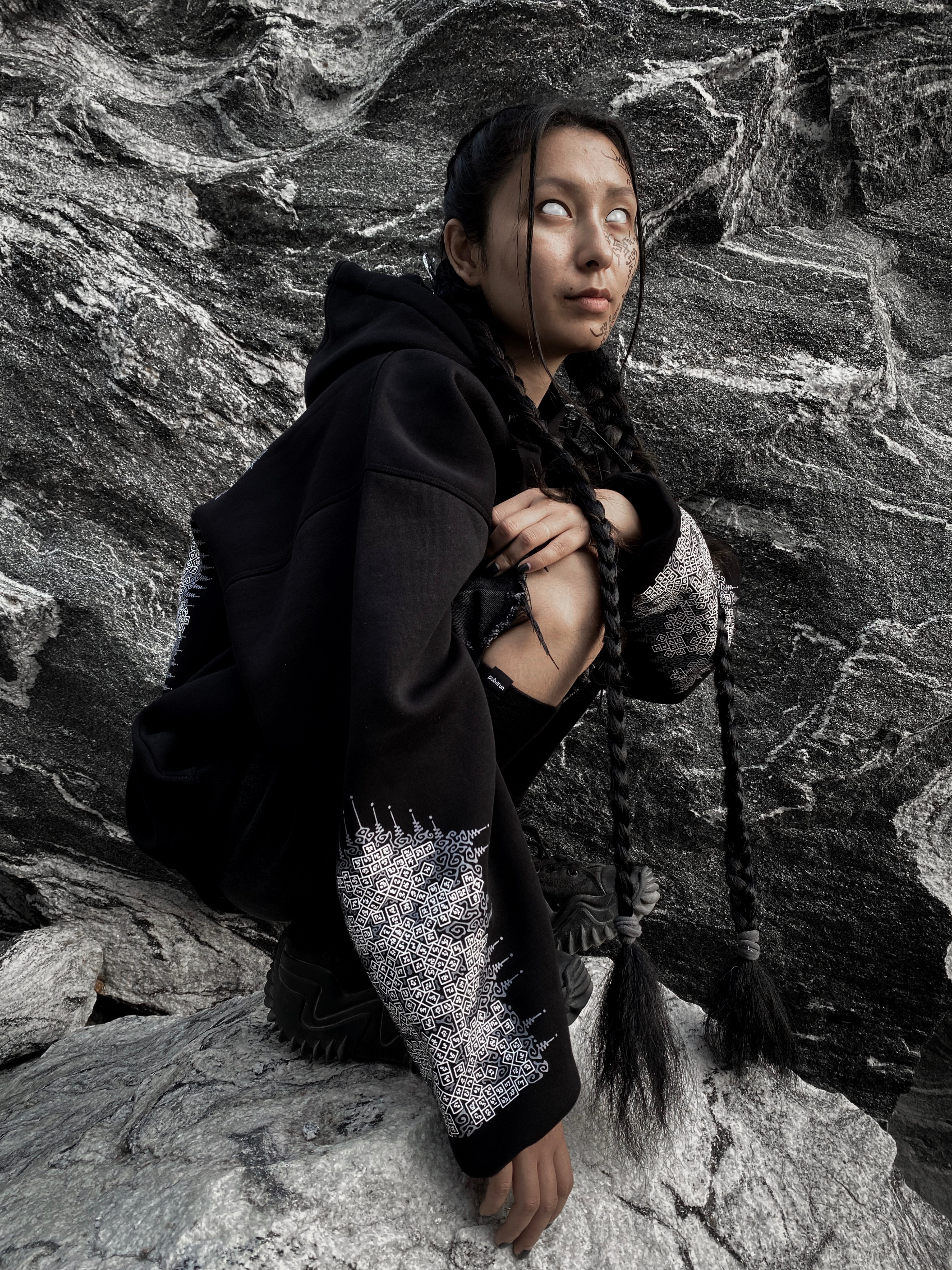 puberun blackmarket is an apparel brand based in Bongaigaon district, in the Aie valley region of Assam, North-East India. We exclusively work with apparels of black colour. The design inspirations come from the tattoo and body modification traditions of indigenous and modern tribes from all over the world. We attempt to learn, document and spread awareness of these cultures using the medium of apparels.
