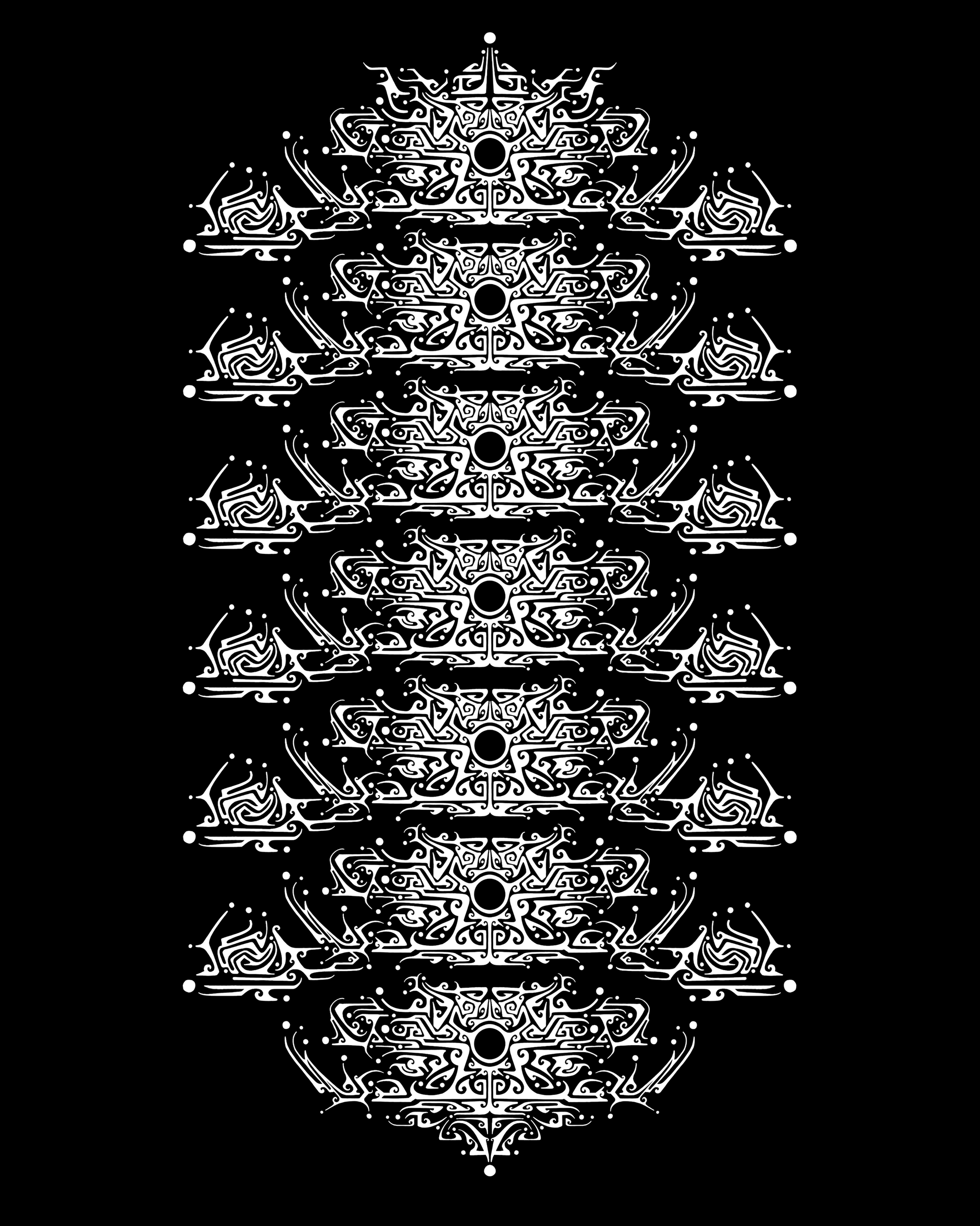 The patterns of this design are inspired by the tribal body markings of Borneo and Polynesian tattoo cultures. The lines, dots and the space between flow together like liquid, yet carry the might and precision of a mechanical implant. This duality is my homage to the blending of our most primal roots with the apex of human innovation. I have made these patterns with the intention to harmonize the flow of the energy within, tapping into the body’s innate power to energize, heal and elevate consciousness.